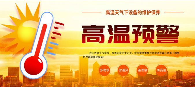 近日高溫異常,多地已啟動高溫黃色或紅色預警。綠保在此特別提醒高溫天氣請注意人員與設(shè)備安全,做好防暑降溫工作!