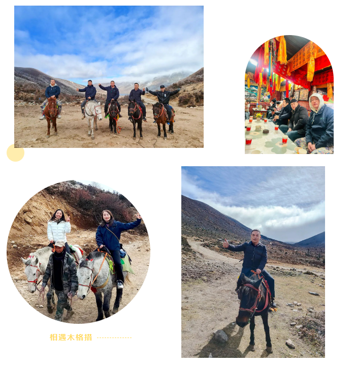 在木格措,體驗騎馬與品嘗酥油茶成為了大家深入感受當地風土人情的絕佳方式。騎上駿馬,微風輕輕拂過臉頰,帶來絲絲涼意與清新的草香。馬脖上的鈴鐺發出清脆悅耳的聲響,仿佛在低聲訴說著這片土地古老而神秘的故事。熱氣騰騰的酥油茶端到面前,輕抿一口,濃郁的奶香與茶香在舌尖散開,那獨特的味道瞬間彌漫整個口腔,讓人心曠神怡。在馬背上領略草原的壯美,在茶香中品味藏族文化的韻味,綠保團隊成員們沉浸其中,盡情享受著這一場別具一格的文化與自然之旅,為此次團建活動畫上了濃墨重彩的一筆。