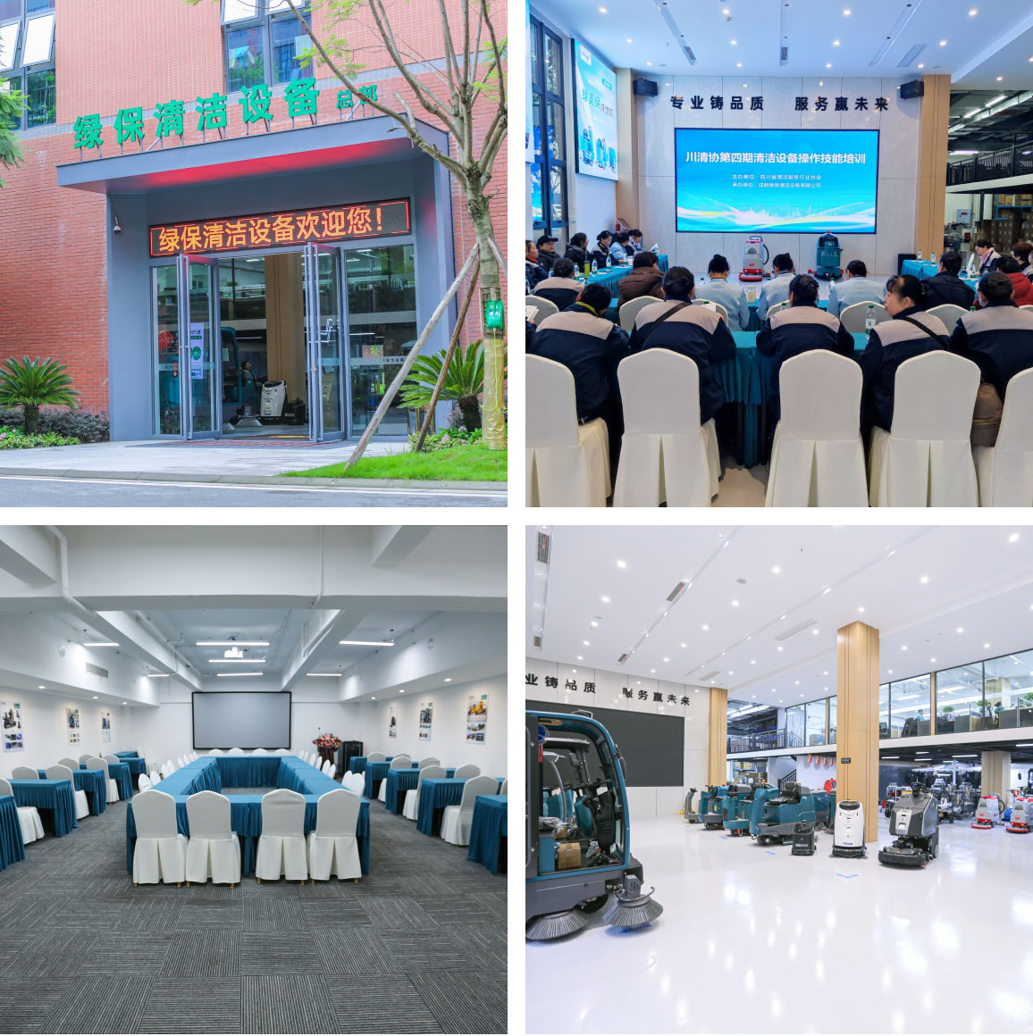 綠保清潔設備總部作為川清協指定的技能培訓基地,為本次實訓提供了全方位、多層次的堅實保障。在硬件設施方面,綠保設有一次可容納 60 人的多功能會議室,寬敞明亮、設施完備,為理論教學提供了舒適的環境 。師資力量上,綠保擁有一支雄厚的師資團隊。培訓講師不僅具備豐富的教學經驗,更在實際操作領域深耕多年,能夠精準把握清潔設備操作的要點與難點。培訓過程中,講師們積極與學員互動,針對學員在日常工作中遇到的諸多難題進行現場答疑,讓學員們帶著問題來,揣著答案走。清潔機具配置上,綠保基地配備了完整的清潔機具,涵蓋市場主流清潔設備,從大型地面清洗機到小型手持清潔工具,一應俱全。學員們能夠親手操作這些設備,在實踐中掌握正確的使用方法,提升操作技能。