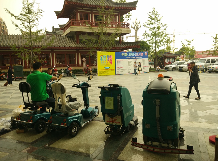 成都綠保清潔用品有限公司的自主品牌綠美保洗地機走進成都市崇州市唐人街,為唐人街每一個角落,打造舒適,高端旅游環境。