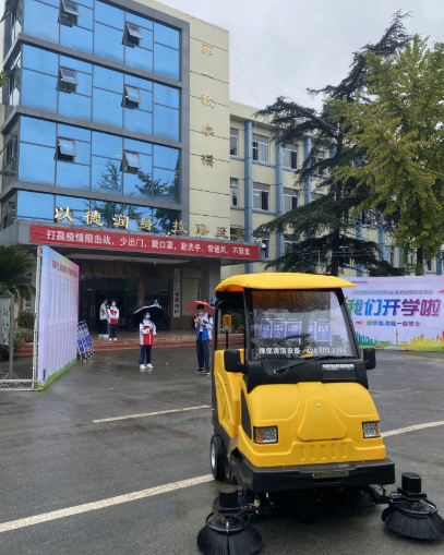 此外,電動掃地機可全天對校區內外進行清理與噴霧消殺;另一方面,疫情期間,使用掃地機就不用請外包保潔公司,有效避免學生與外來陌生人的接觸,減少感染的風險。