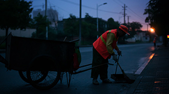 深冬的凌晨當大多數(shù)市民還在熟睡中,寂靜的大街上只有繁星點點,昏暗的路燈下,他們就已經開始揮舞著掃帚奮戰(zhàn)在大街小巷,一年四季從早到晚,天天如此從不間斷,不怕臟不怕累,把我們的街道打掃的干干凈凈,弄臟了自己,換來了萬家潔凈,在平凡的崗位上做出了不平凡的事情。