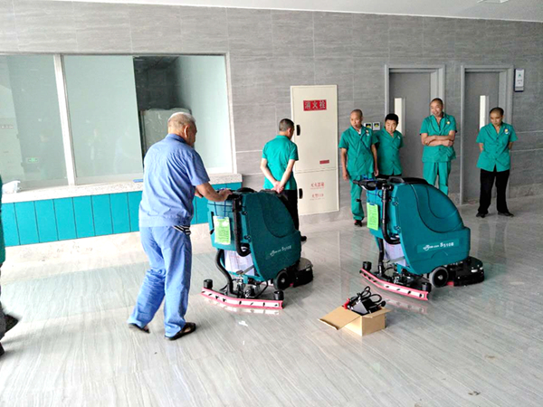洗地機工作開始時,清水或清潔劑溶液會自動流到洗地機刷盤上,高速旋轉的刷盤讓清洗劑溶液與污漬充分發生化學反應,使污垢迅速與地面分離,后面的吸水刮扒將污水徹底地吸干刮凈,使地面一塵不染、潔凈如新。